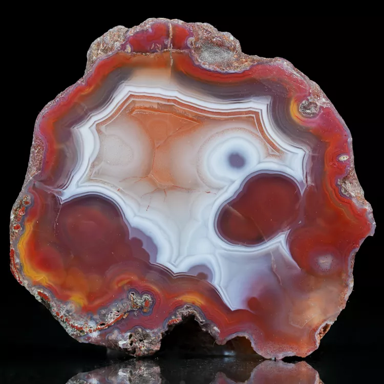 Prezentowany okaz to naturalny agat z Malawi, pochodzący z prestiżowego złoża Alimajo. Agaty z tego regionu wyróżniają niezwykle nasycone i różnorodne barwy, które tworzą gęste, precyzyjne pasma chalcedonu. Wysoka kontrastowość rysunku oraz unikalna, żywa kolorystyka sprawiają, że okazy z tej lokalizacji są rzadkim i pożądanym materiałem kolekcjonerskim.