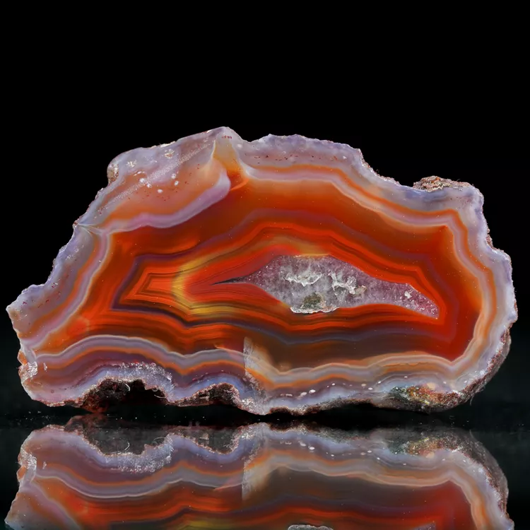 Prezentowany okaz to naturalny agat z Malawi, pochodzący z prestiżowego złoża Alimajo. Agaty z tego regionu wyróżniają niezwykle nasycone i różnorodne barwy, które tworzą gęste, precyzyjne pasma chalcedonu. Wysoka kontrastowość rysunku oraz unikalna, żywa kolorystyka sprawiają, że okazy z tej lokalizacji są rzadkim i pożądanym materiałem kolekcjonerskim.