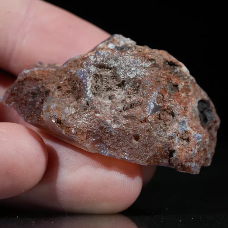 Agaty z Malawi, a w szczególności te z Alimajo, wyróżniają się na tle innych okazów swoją "żywą" paletą barw. Ich warstwy często przybierają nasycone odcienie, tworząc kontrastowe, hipnotyzujące pasma. Polerowana strona okazu została wykończona z najwyższą dbałością o detal, aby w pełni wyeksponować naturalny blask i wielowarstwowość kamienia.