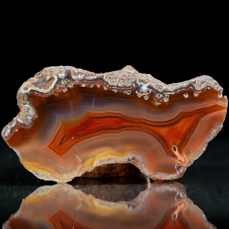 Agaty z Malawi, a w szczególności te z Alimajo, wyróżniają się na tle innych okazów swoją "żywą" paletą barw. Ich warstwy często przybierają nasycone odcienie, tworząc kontrastowe, hipnotyzujące pasma. Polerowana strona okazu została wykończona z najwyższą dbałością o detal, aby w pełni wyeksponować naturalny blask i wielowarstwowość kamienia.