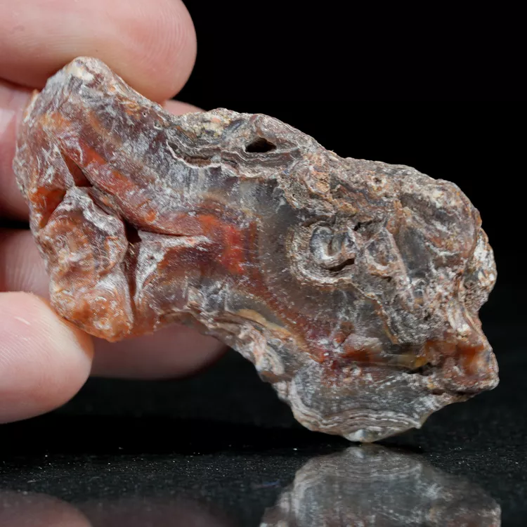 Prezentowany okaz to naturalny agat z Malawi, pochodzący z prestiżowego złoża Alimajo. Agaty z tego regionu wyróżniają niezwykle nasycone i różnorodne barwy, które tworzą gęste, precyzyjne pasma chalcedonu. Wysoka kontrastowość rysunku oraz unikalna, żywa kolorystyka sprawiają, że okazy z tej lokalizacji są rzadkim i pożądanym materiałem kolekcjonerskim.