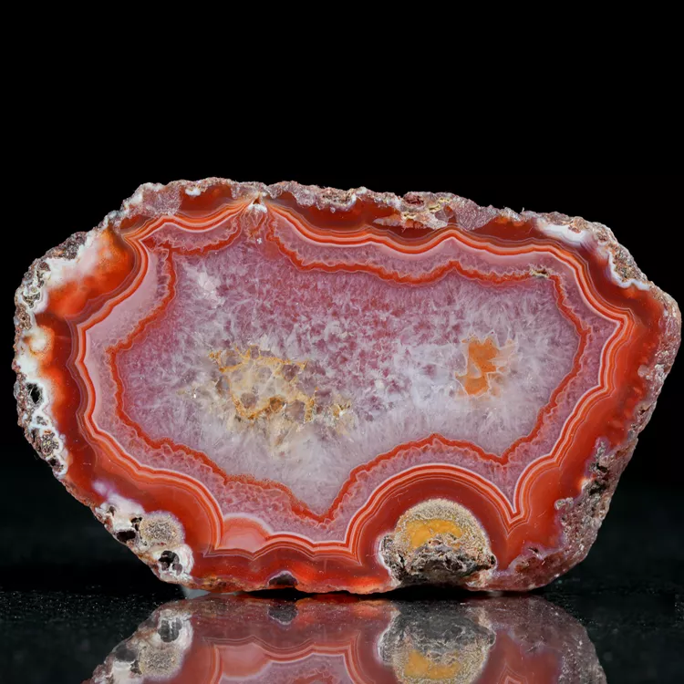 Agaty z Malawi, a w szczególności te z Alimajo, wyróżniają się na tle innych okazów swoją "żywą" paletą barw. Ich warstwy często przybierają nasycone odcienie, tworząc kontrastowe, hipnotyzujące pasma. Polerowana strona okazu została wykończona z najwyższą dbałością o detal, aby w pełni wyeksponować naturalny blask i wielowarstwowość kamienia.