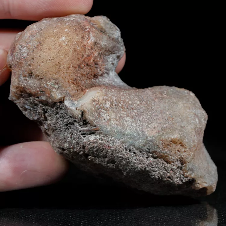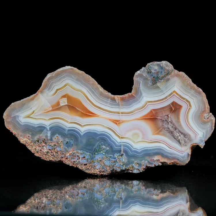 Agaty z Malawi, a w szczególności te z Alimajo, wyróżniają się na tle innych okazów swoją "żywą" paletą barw. Ich warstwy często przybierają nasycone odcienie, tworząc kontrastowe, hipnotyzujące pasma. Polerowana strona okazu została wykończona z najwyższą dbałością o detal, aby w pełni wyeksponować naturalny blask i wielowarstwowość kamienia.