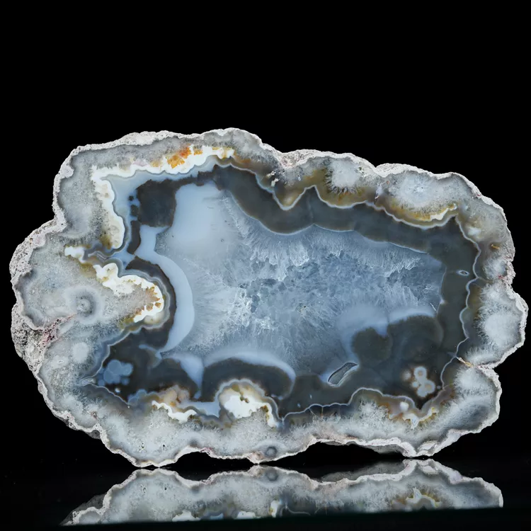 Agaty Puma swoją nazwę zawdzięczają drapieżnemu, niemal "organicznemu" rysunkowi, który przypomina tekstury spotykane w świecie natury. Okazy te powstawały w ekstremalnych warunkach geologicznych Patagonii, co zaowocowało niezwykłą twardością materiału i niemal całkowitym brakiem wewnętrznych spękań. Powierzchnia tego okazu została starannie wypolerowana w naszej pracowni, aby w pełni wyeksponować hipnotyzujące linie wzrostu chalcedonu.