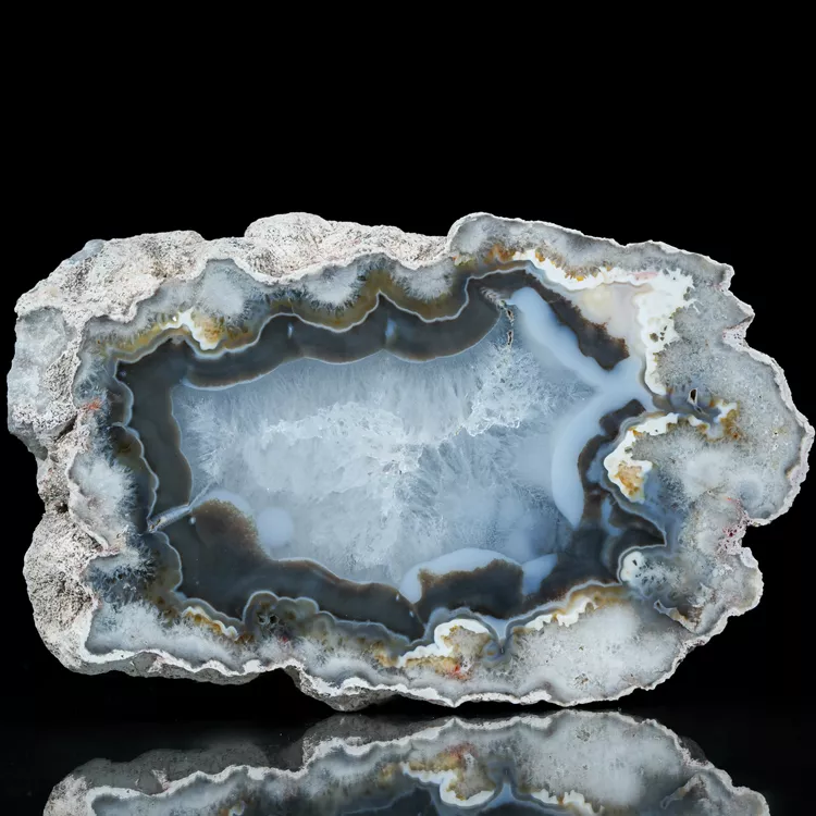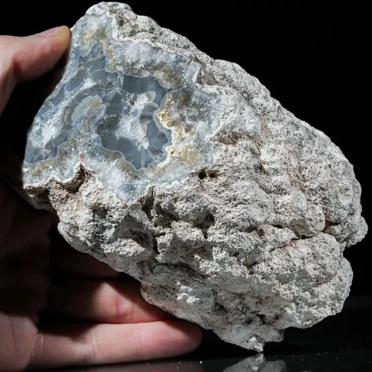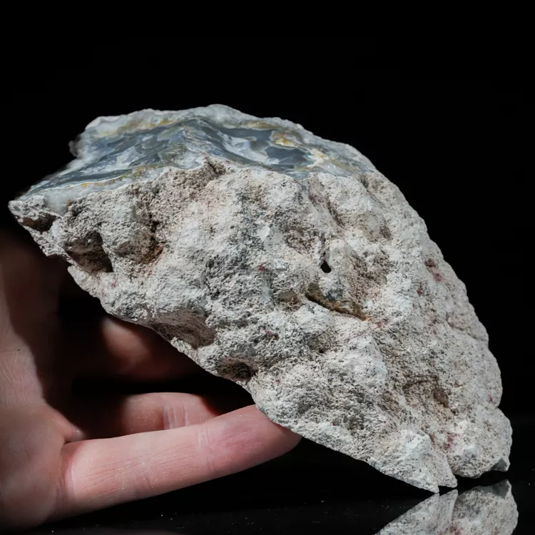 Agaty Puma swoją nazwę zawdzięczają drapieżnemu, niemal "organicznemu" rysunkowi, który przypomina tekstury spotykane w świecie natury. Okazy te powstawały w ekstremalnych warunkach geologicznych Patagonii, co zaowocowało niezwykłą twardością materiału i niemal całkowitym brakiem wewnętrznych spękań. Powierzchnia tego okazu została starannie wypolerowana w naszej pracowni, aby w pełni wyeksponować hipnotyzujące linie wzrostu chalcedonu.