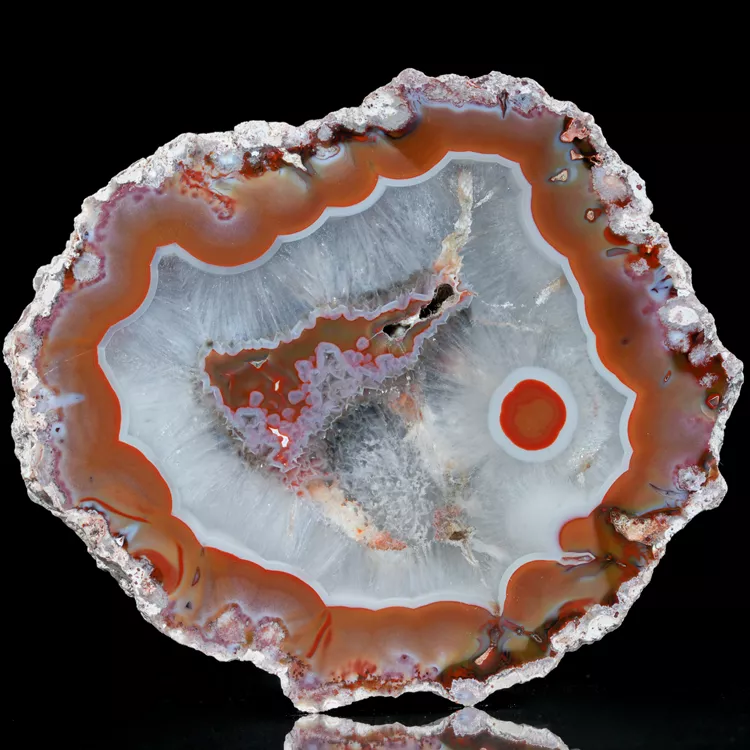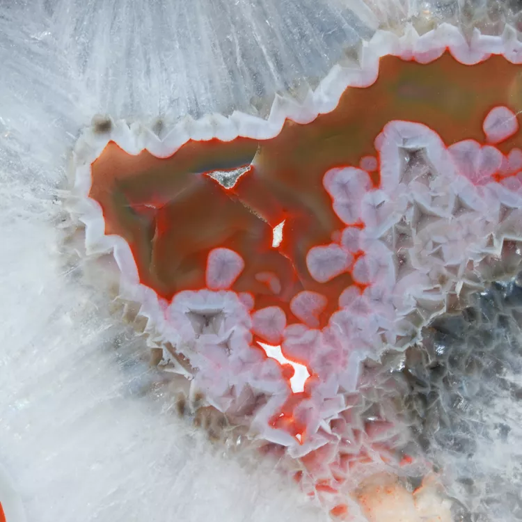 Agaty Puma swoją nazwę zawdzięczają drapieżnemu, niemal "organicznemu" rysunkowi, który przypomina tekstury spotykane w świecie natury. Okazy te powstawały w ekstremalnych warunkach geologicznych Patagonii, co zaowocowało niezwykłą twardością materiału i niemal całkowitym brakiem wewnętrznych spękań. Powierzchnia tego okazu została starannie wypolerowana w naszej pracowni, aby w pełni wyeksponować hipnotyzujące linie wzrostu chalcedonu.