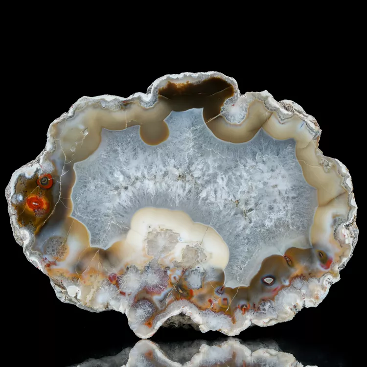 Prezentowany okaz to rzadki Agat Puma, pochodzący z surowych terenów argentyńskiej Patagonii. Jest to jedna z najbardziej poszukiwanych odmian agatów z tego regionu. Wysoki kontrast oraz ziemiste, nasycone barwy sprawiają, że każdy okaz jest niepowtarzalnym dziełem natury, stanowiącym cenny nabytek dla zaawansowanych kolekcjonerów.