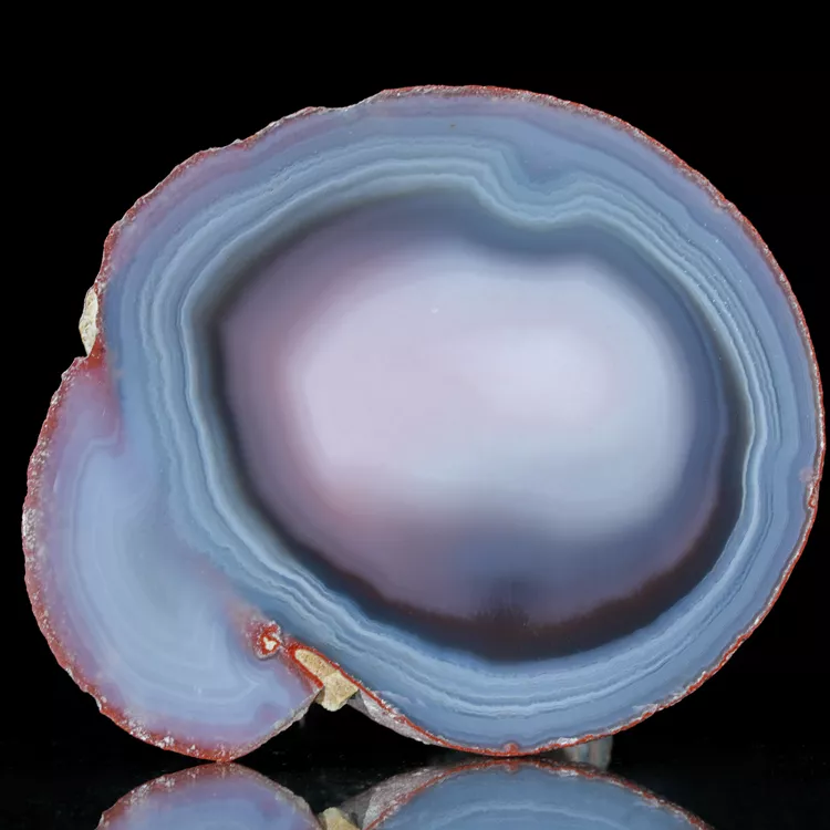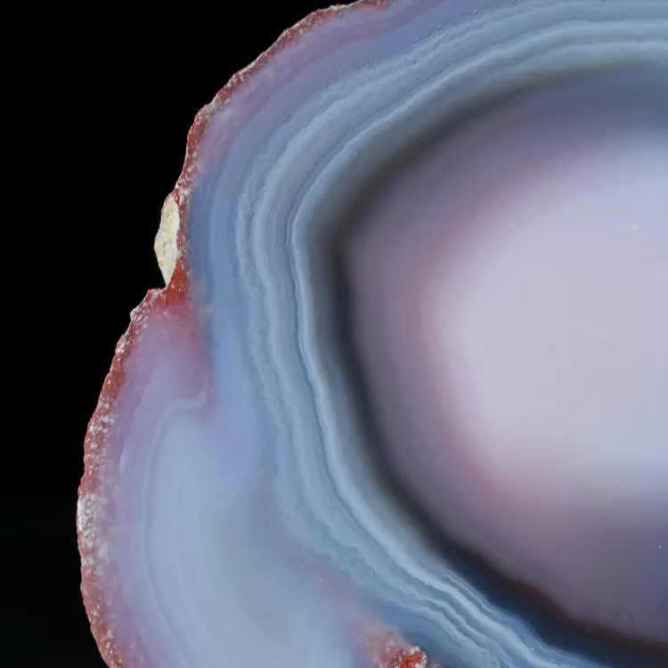 Agaty z Mozambiku, a w szczególności te z rejonu Tete, są uważane przez kolekcjonerów za jedne z najbardziej fascynujących na świecie. Ich cechą rozpoznawczą jest ekstremalnie gęste i cienkie pasmowanie, które tworzy niemal malarskie kompozycje wewnątrz kamienia. Barwy agatów z Tete są naturalne, nasycone i trwałe. Ten konkretny okaz zachwyca precyzją warstw, które układają się w hipnotyzujący wzór, świadczący o milionach lat powolnej krystalizacji krzemionki wewnątrz wulkanicznych pustek.