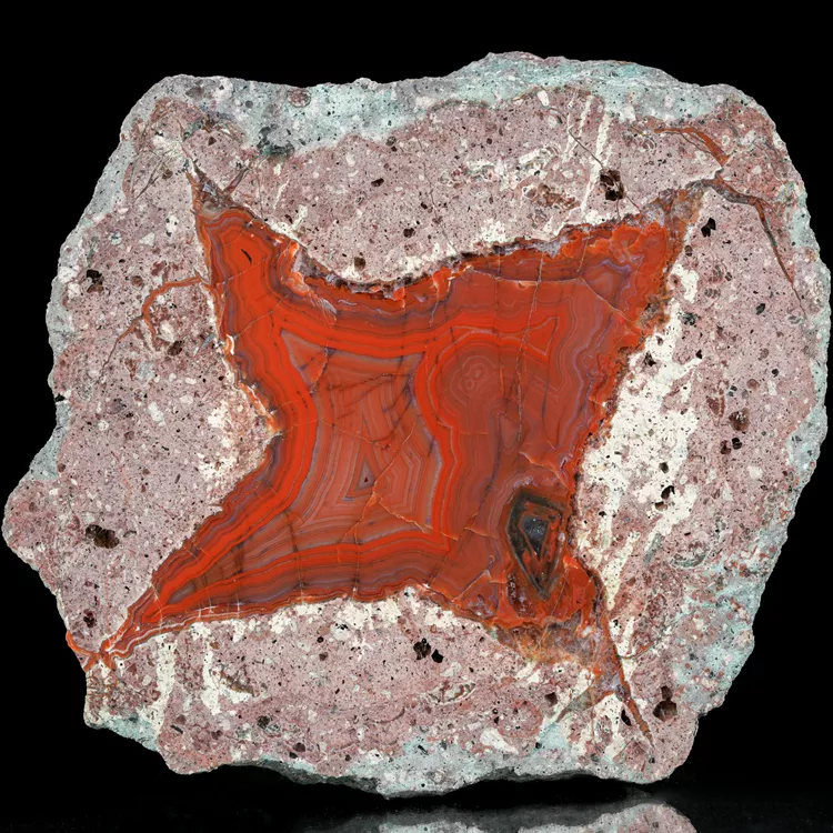 Dolnośląskie agaty są symbolem polskiego bogactwa geologicznego. Ta konkretna połówka została poddana starannej obróbce w naszym warsztacie, aby w pełni ukazać jej wewnętrzną strukturę i delikatne przejścia barwne. Powstanie tego minerału to efekt skomplikowanych procesów hydrotermalnych zachodzących miliony lat temu wewnątrz pęcherzy gazowych w stygnącej lawie.