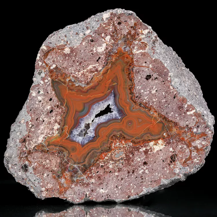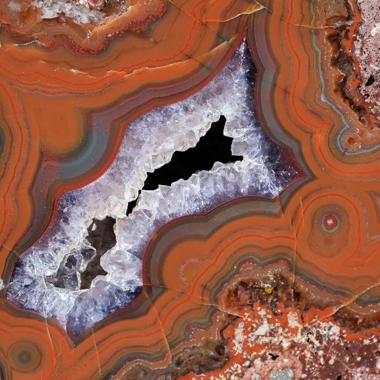 Dolnośląskie agaty są symbolem polskiego bogactwa geologicznego. Ta konkretna połówka została poddana starannej obróbce w naszym warsztacie, aby w pełni ukazać jej wewnętrzną strukturę i delikatne przejścia barwne. Powstanie tego minerału to efekt skomplikowanych procesów hydrotermalnych zachodzących miliony lat temu wewnątrz pęcherzy gazowych w stygnącej lawie.