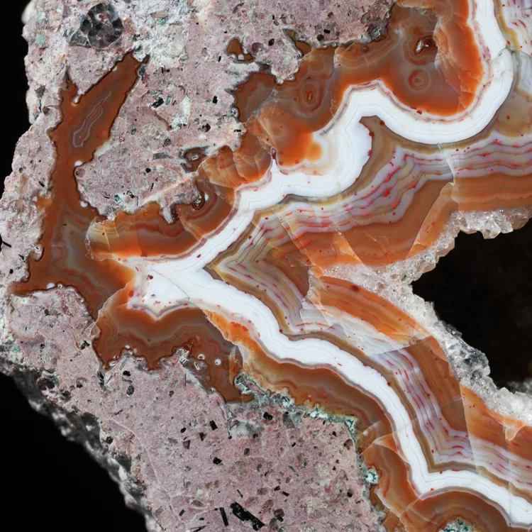 Dolnośląskie agaty są symbolem polskiego bogactwa geologicznego. Ta konkretna połówka została poddana starannej obróbce w naszym warsztacie, aby w pełni ukazać jej wewnętrzną strukturę i delikatne przejścia barwne. Powstanie tego minerału to efekt skomplikowanych procesów hydrotermalnych zachodzących miliony lat temu wewnątrz pęcherzy gazowych w stygnącej lawie.