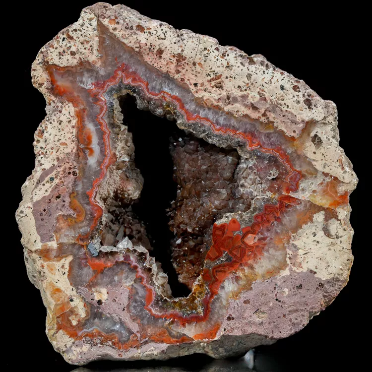 Dolnośląskie agaty są symbolem polskiego bogactwa geologicznego. Ta konkretna połówka została poddana starannej obróbce w naszym warsztacie, aby w pełni ukazać jej wewnętrzną strukturę i delikatne przejścia barwne. Powstanie tego minerału to efekt skomplikowanych procesów hydrotermalnych zachodzących miliony lat temu wewnątrz pęcherzy gazowych w stygnącej lawie.