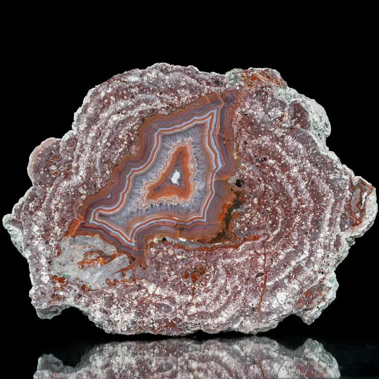 Dolnośląskie agaty są symbolem polskiego bogactwa geologicznego. Ta konkretna połówka została poddana starannej obróbce w naszym warsztacie, aby w pełni ukazać jej wewnętrzną strukturę i delikatne przejścia barwne. Powstanie tego minerału to efekt skomplikowanych procesów hydrotermalnych zachodzących miliony lat temu wewnątrz pęcherzy gazowych w stygnącej lawie.