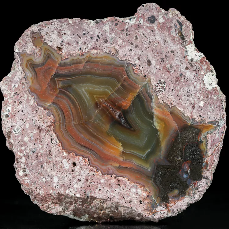 Dolnośląskie agaty są symbolem polskiego bogactwa geologicznego. Ta konkretna połówka została poddana starannej obróbce w naszym warsztacie, aby w pełni ukazać jej wewnętrzną strukturę i delikatne przejścia barwne. Powstanie tego minerału to efekt skomplikowanych procesów hydrotermalnych zachodzących miliony lat temu wewnątrz pęcherzy gazowych w stygnącej lawie.