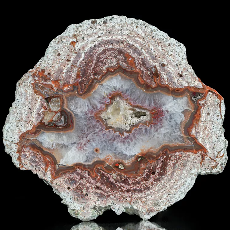 Dolnośląskie agaty są symbolem polskiego bogactwa geologicznego. Ta konkretna połówka została poddana starannej obróbce w naszym warsztacie, aby w pełni ukazać jej wewnętrzną strukturę i delikatne przejścia barwne. Powstanie tego minerału to efekt skomplikowanych procesów hydrotermalnych zachodzących miliony lat temu wewnątrz pęcherzy gazowych w stygnącej lawie.