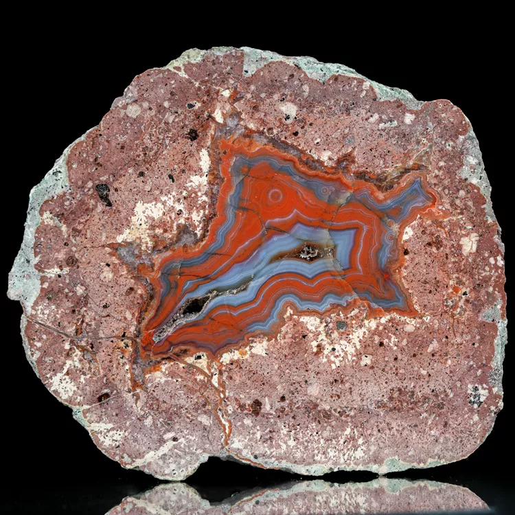 Dolnośląskie agaty są symbolem polskiego bogactwa geologicznego. Ta konkretna połówka została poddana starannej obróbce w naszym warsztacie, aby w pełni ukazać jej wewnętrzną strukturę i delikatne przejścia barwne. Powstanie tego minerału to efekt skomplikowanych procesów hydrotermalnych zachodzących miliony lat temu wewnątrz pęcherzy gazowych w stygnącej lawie.