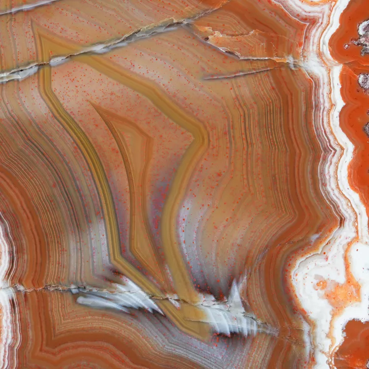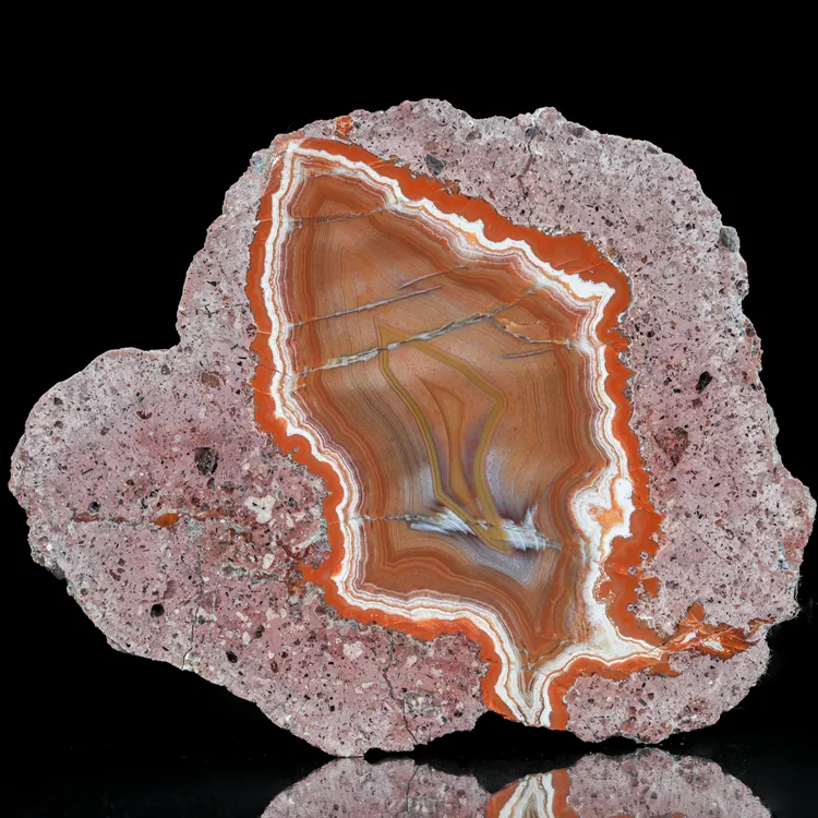 Dolnośląskie agaty są symbolem polskiego bogactwa geologicznego. Ta konkretna połówka została poddana starannej obróbce w naszym warsztacie, aby w pełni ukazać jej wewnętrzną strukturę i delikatne przejścia barwne. Powstanie tego minerału to efekt skomplikowanych procesów hydrotermalnych zachodzących miliony lat temu wewnątrz pęcherzy gazowych w stygnącej lawie.