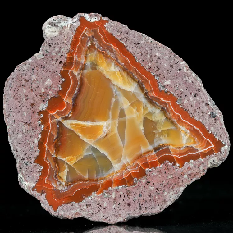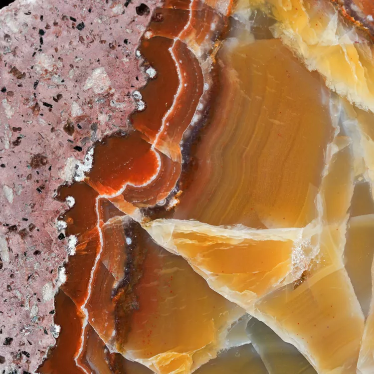 Dolnośląskie agaty są symbolem polskiego bogactwa geologicznego. Ta konkretna połówka została poddana starannej obróbce w naszym warsztacie, aby w pełni ukazać jej wewnętrzną strukturę i delikatne przejścia barwne. Powstanie tego minerału to efekt skomplikowanych procesów hydrotermalnych zachodzących miliony lat temu wewnątrz pęcherzy gazowych w stygnącej lawie.