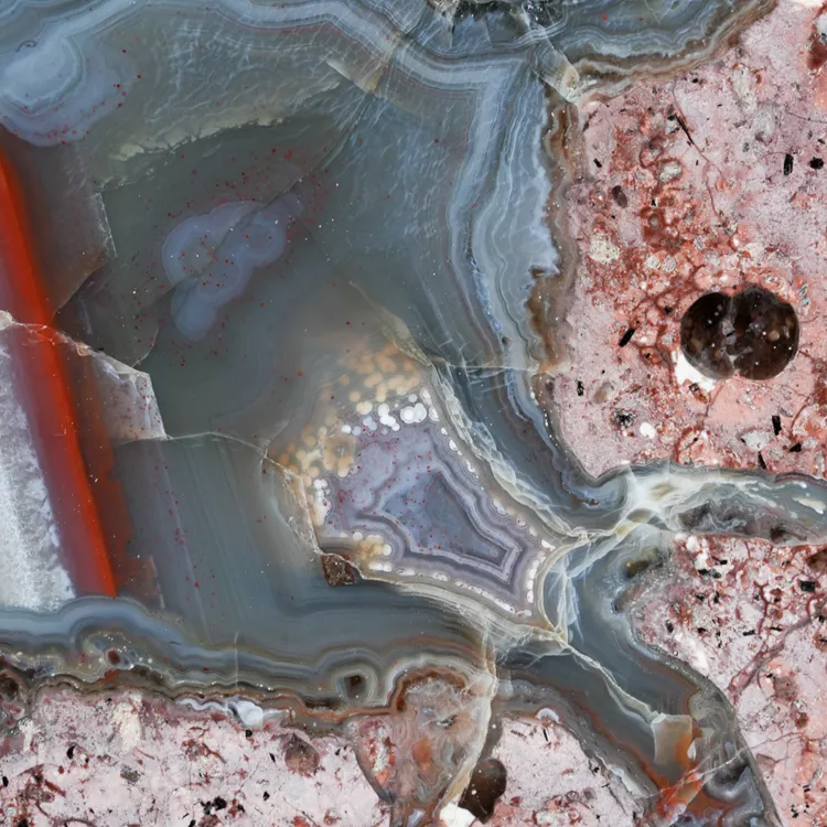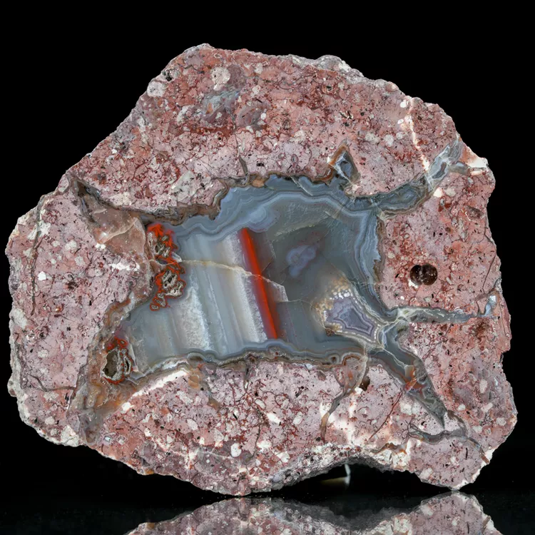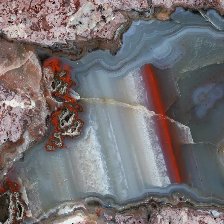 Dolnośląskie agaty są symbolem polskiego bogactwa geologicznego. Ta konkretna połówka została poddana starannej obróbce w naszym warsztacie, aby w pełni ukazać jej wewnętrzną strukturę i delikatne przejścia barwne. Powstanie tego minerału to efekt skomplikowanych procesów hydrotermalnych zachodzących miliony lat temu wewnątrz pęcherzy gazowych w stygnącej lawie.