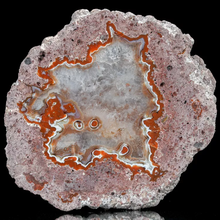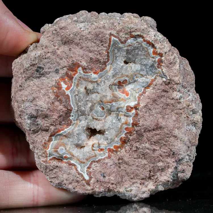 Dolnośląskie agaty są symbolem polskiego bogactwa geologicznego. Ta konkretna połówka została poddana starannej obróbce w naszym warsztacie, aby w pełni ukazać jej wewnętrzną strukturę i delikatne przejścia barwne. Powstanie tego minerału to efekt skomplikowanych procesów hydrotermalnych zachodzących miliony lat temu wewnątrz pęcherzy gazowych w stygnącej lawie.
