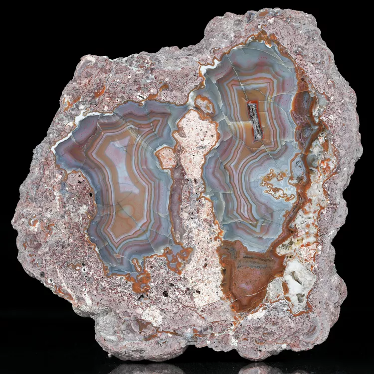 Dolnośląskie agaty są symbolem polskiego bogactwa geologicznego. Ta konkretna połówka została poddana starannej obróbce w naszym warsztacie, aby w pełni ukazać jej wewnętrzną strukturę i delikatne przejścia barwne. Powstanie tego minerału to efekt skomplikowanych procesów hydrotermalnych zachodzących miliony lat temu wewnątrz pęcherzy gazowych w stygnącej lawie.