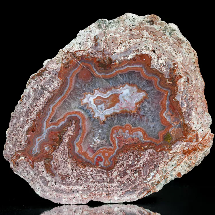 Dolnośląskie agaty są symbolem polskiego bogactwa geologicznego. Ta konkretna połówka została poddana starannej obróbce w naszym warsztacie, aby w pełni ukazać jej wewnętrzną strukturę i delikatne przejścia barwne. Powstanie tego minerału to efekt skomplikowanych procesów hydrotermalnych zachodzących miliony lat temu wewnątrz pęcherzy gazowych w stygnącej lawie.