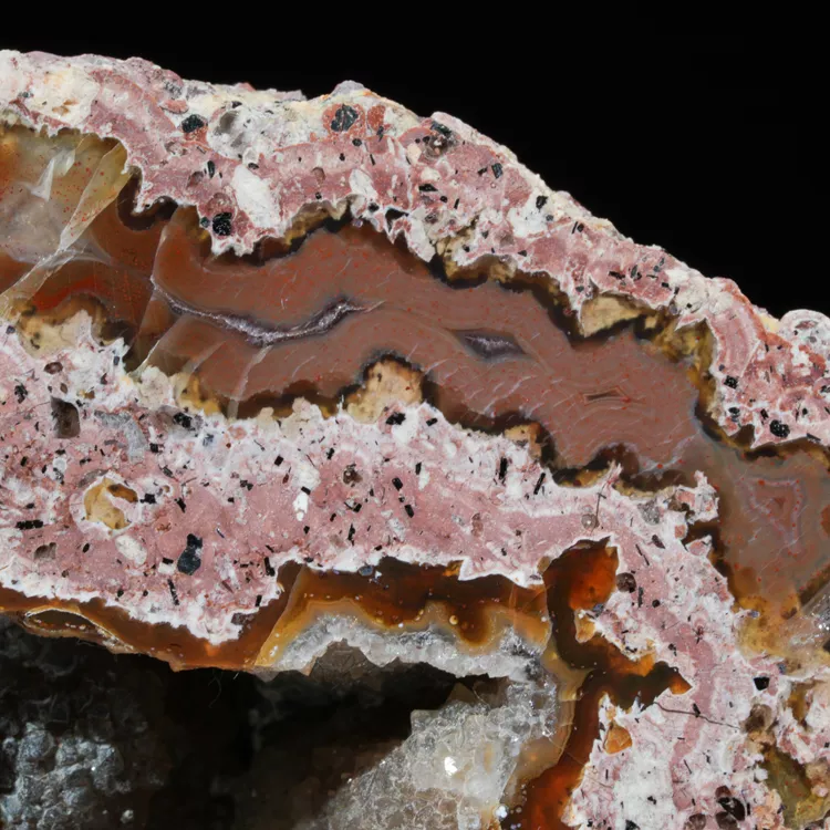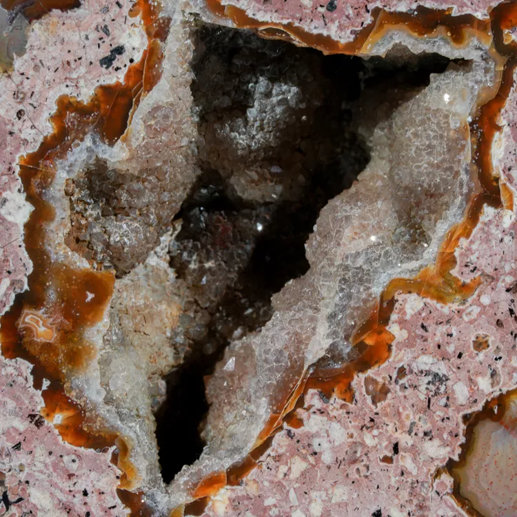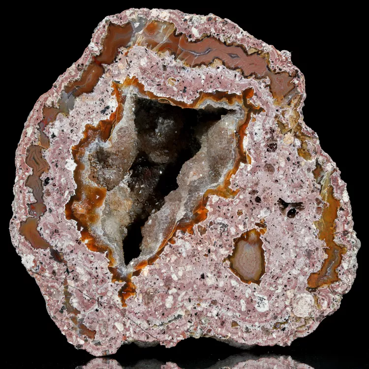 Dolnośląskie agaty są symbolem polskiego bogactwa geologicznego. Ta konkretna połówka została poddana starannej obróbce w naszym warsztacie, aby w pełni ukazać jej wewnętrzną strukturę i delikatne przejścia barwne. Powstanie tego minerału to efekt skomplikowanych procesów hydrotermalnych zachodzących miliony lat temu wewnątrz pęcherzy gazowych w stygnącej lawie.