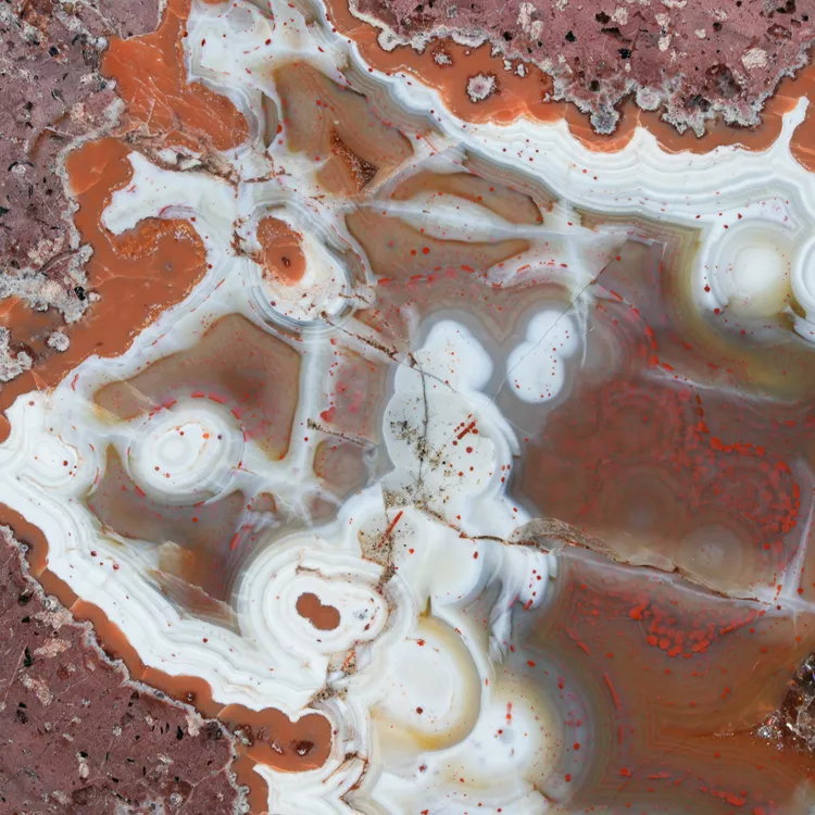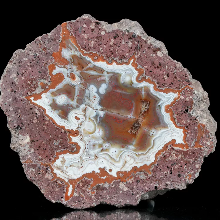 Dolnośląskie agaty są symbolem polskiego bogactwa geologicznego. Ta konkretna połówka została poddana starannej obróbce w naszym warsztacie, aby w pełni ukazać jej wewnętrzną strukturę i delikatne przejścia barwne. Powstanie tego minerału to efekt skomplikowanych procesów hydrotermalnych zachodzących miliony lat temu wewnątrz pęcherzy gazowych w stygnącej lawie.