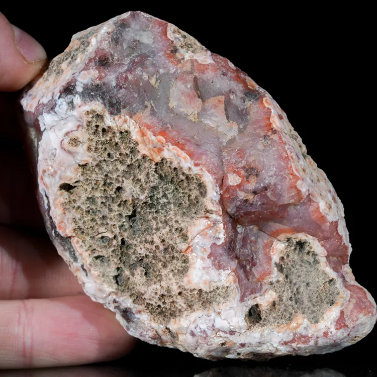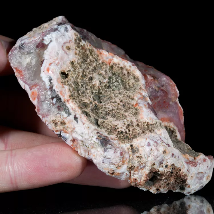 - Unikatowy rysunek: Marokańskie agaty często posiadają ziemiste, ciepłe barwy przeplatane krystalicznym kwarcem, co czyni każdą sztukę niepowtarzalną.