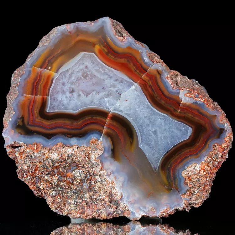Prezentowany okaz to naturalny agat z Malawi, pochodzący z prestiżowego złoża Alimajo. Agaty z tego regionu wyróżniają niezwykle nasycone i różnorodne barwy, które tworzą gęste, precyzyjne pasma chalcedonu. Wysoka kontrastowość rysunku oraz unikalna, żywa kolorystyka sprawiają, że okazy z tej lokalizacji są rzadkim i pożądanym materiałem kolekcjonerskim.