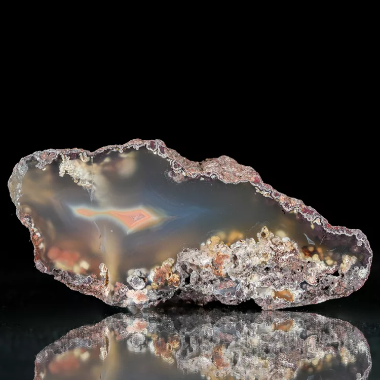 Agaty z Malawi, a w szczególności te z Alimajo, wyróżniają się na tle innych okazów swoją "żywą" paletą barw. Ich warstwy często przybierają nasycone odcienie, tworząc kontrastowe, hipnotyzujące pasma. Polerowana strona okazu została wykończona z najwyższą dbałością o detal, aby w pełni wyeksponować naturalny blask i wielowarstwowość kamienia.