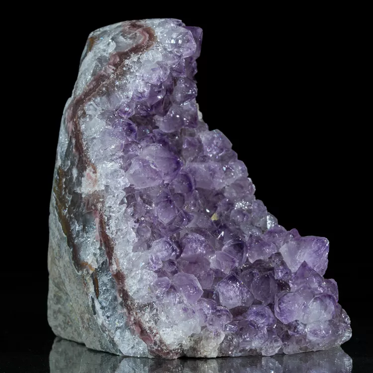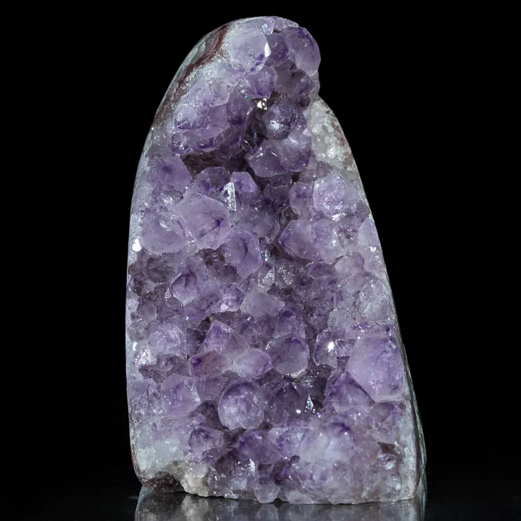 Oferujemy w pełni naturalny ametyst w formie krystalicznej geody. Okaz stoi stabilnie bez potrzeby użycia dodatkowej podstawki dzięki precyzyjnie podciętej podstawie. Ten niezwykle efektowny minerał zachwyca intensywną, fioletową barwą i wysokim połyskiem ładnie wykształconych kryształów. Idealnie sprawdzi się jako naturalna dekoracja wnętrza, element kolekcji minerałów lub oryginalny prezent dla miłośników natury.