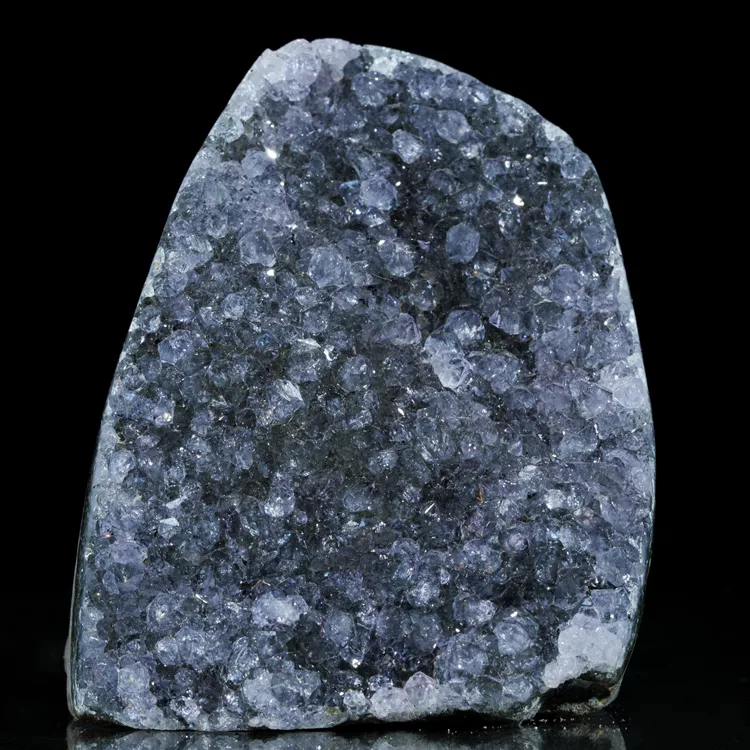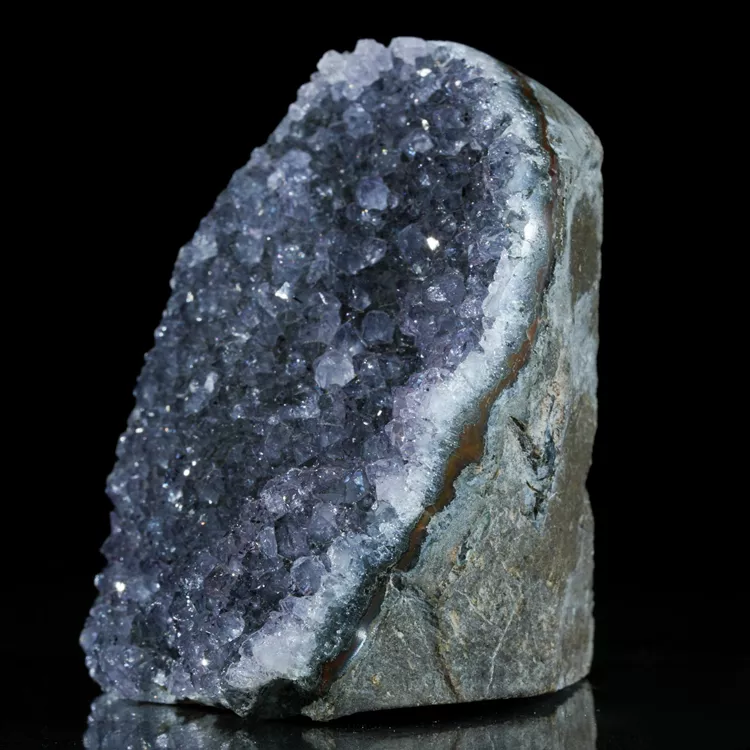 Oferujemy w pełni naturalny ametyst w formie krystalicznej geody. Okaz stoi stabilnie bez potrzeby użycia dodatkowej podstawki dzięki precyzyjnie podciętej podstawie. Ten niezwykle efektowny minerał zachwyca intensywną, fioletową barwą i wysokim połyskiem ładnie wykształconych kryształów. Idealnie sprawdzi się jako naturalna dekoracja wnętrza, element kolekcji minerałów lub oryginalny prezent dla miłośników natury.