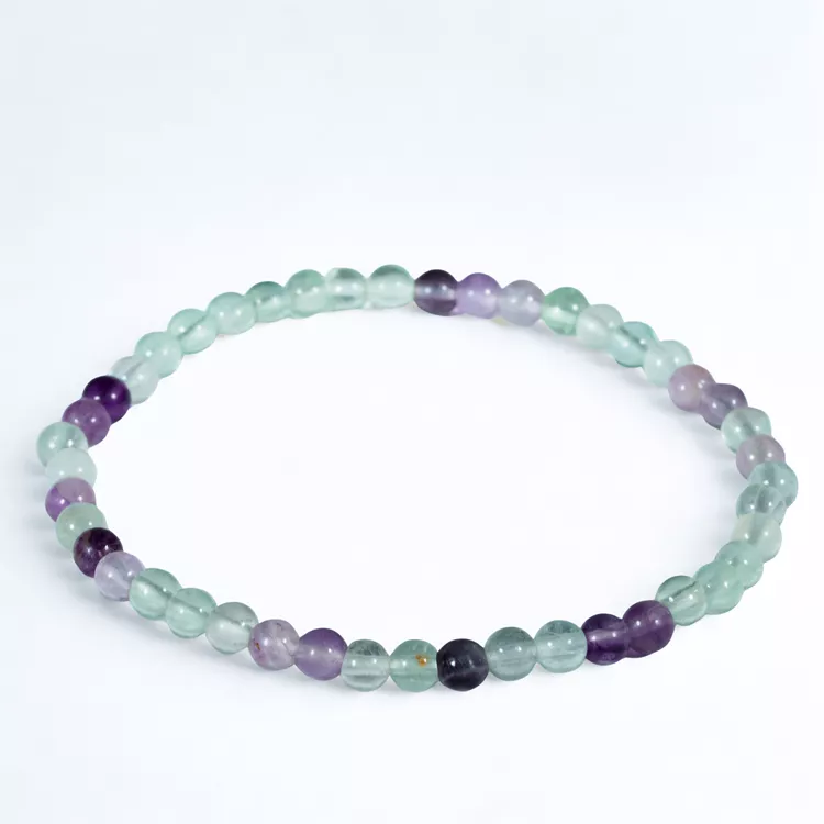 Bransoletka Fluoryt 4mm – Gładkie Kulki – Naturalna Harmonia Zieleni i Fioletu