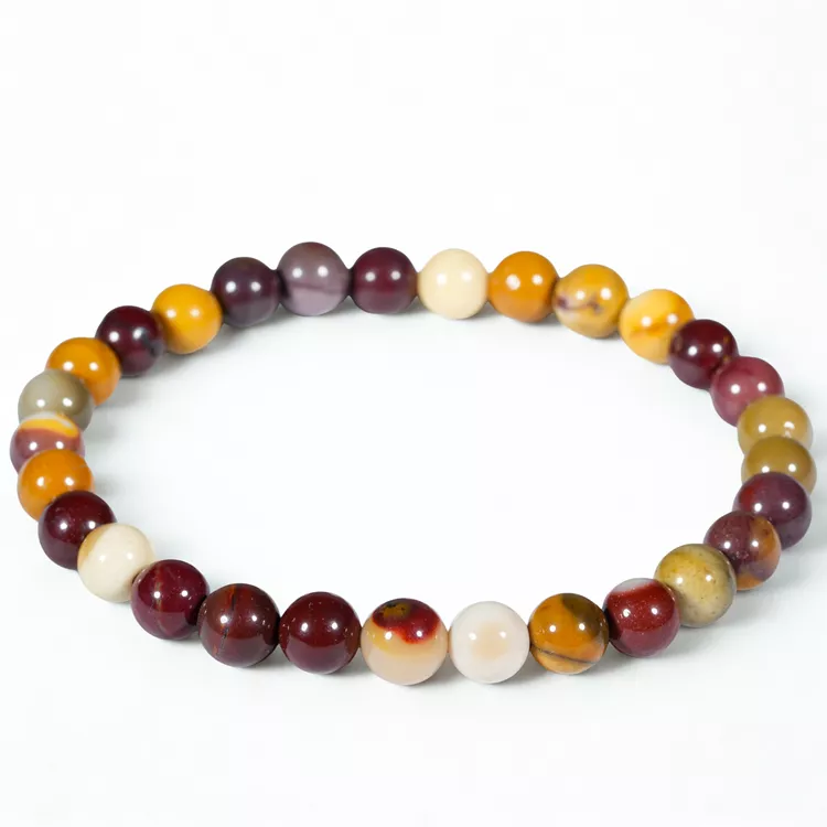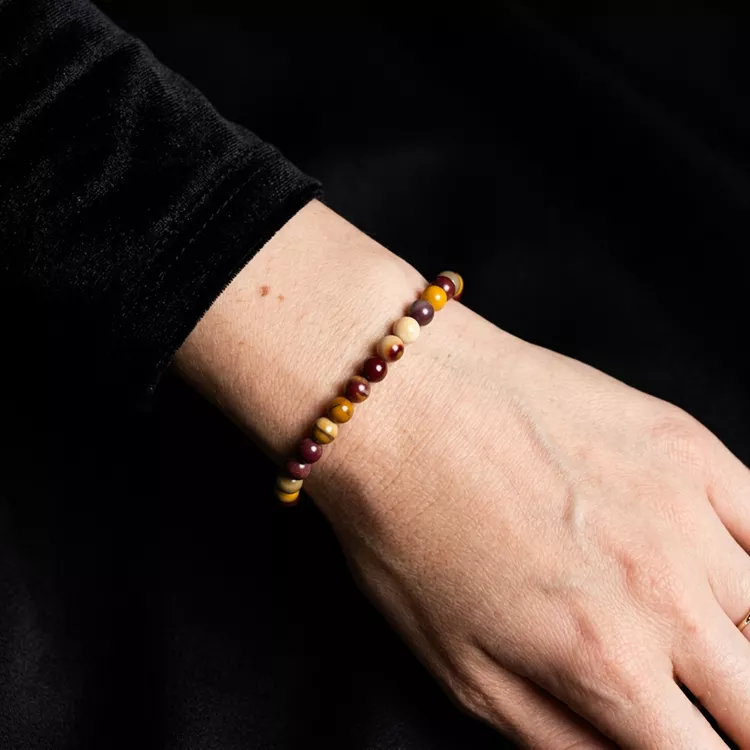 Jaspis to jeden z najbardziej różnorodnych minerałów na świecie, a jego odmiana mookait, pochodząca z Australii, jest szczególnie ceniona za swoją "słoneczną" energię. Uważany jest za kamień stabilizacji, pewności siebie i otwartości na zmiany. Dzięki nasyconym barwom czerwieni i żółci, jaspis ten kojarzy się z siłami witalnymi natury. Rozmiar 6 mm sprawia, że bransoletka jest lekka, ale jej intensywne kolory przyciągają wzrok, stanowiąc energetyczny akcent każdej stylizacji.