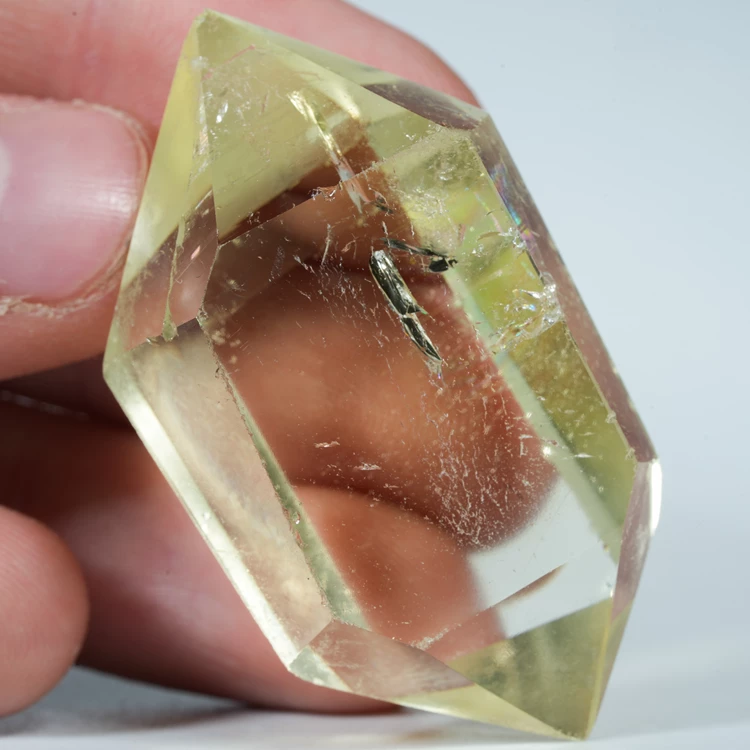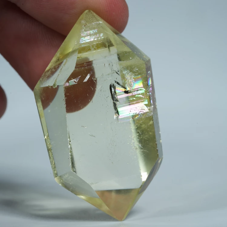 Prezentujemy wysokiej klasy kryształ cytrynu z Brazylii, wyróżniający się rzadką formą dwustronnego obelisku. Okaz posiada dwa precyzyjnie wyprowadzone, ostre szpice, co czyni go wyjątkowo efektownym elementem kolekcjonerskim. Kryształ jest bardzo przejrzysty, co pozwala na swobodne przenikanie światła i obserwację wewnętrznej struktury minerału. Intensywna, złocista barwa została wydobyta w procesie podgrzewania.