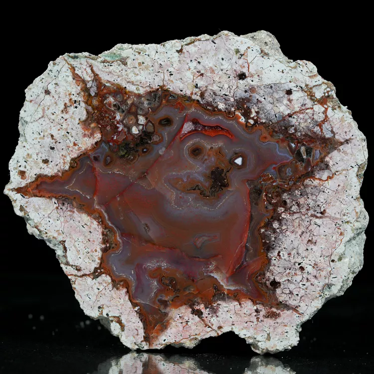 Kamień został precyzyjnie wypolerowany, co pozwoliło na wydobycie pełnej głębi jego struktury. Drobne, naturalne kawerny czy inkluzje są dowodem na autentyczność minerału i jego powstanie w wyniku procesów hydrotermalnych sprzed milionów lat.