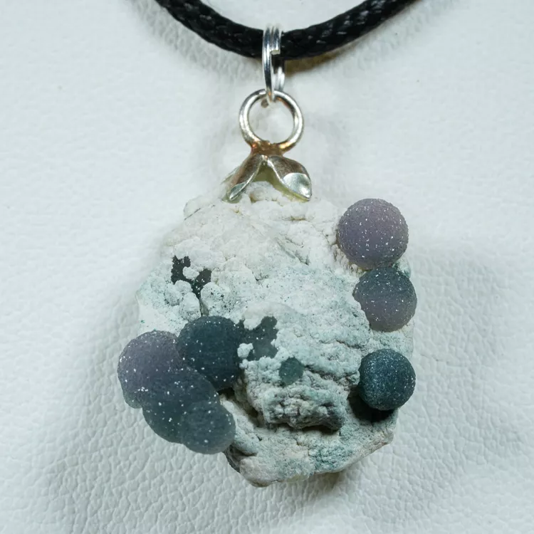Naturalny wisiorek wykonany z rzadkiego ametystu winogronowego o surowej, niepolerowanej strukturze. Ten wyjątkowy minerał, odkryty dopiero w 2016 roku, występuje jedynie w dwóch miejscach na świecie – w Indonezji oraz USA. Jego charakterystyczne, kuliste formy nadają mu niepowtarzalny wygląd. Zawieszka jest gotowa do noszenia po dodaniu łańcuszka lub rzemienia.