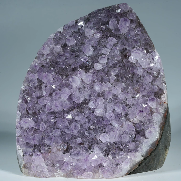 Oferujemy w pełni naturalny ametyst w formie krystalicznej geody, okaz stoi stabilnie bez potrzeby użycia dodatkowej podstawki, dzięki podciętej podstawie. Ten niezwykle efektowny minerał zachwyca intensywną, fioletową barwą i połyskiem ładnie wykształconych kryształów ametystu. Idealnie sprawdzi się jako naturalna dekoracja wnętrza, element kolekcji minerałów lub oryginalny prezent dla miłośników kamieni naturalnych.