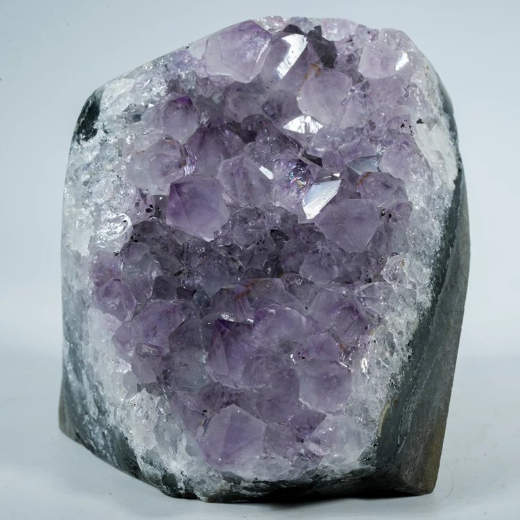 Oferujemy w pełni naturalny ametyst w formie krystalicznej geody, okaz stoi stabilnie bez potrzeby użycia dodatkowej podstawki, dzięki podciętej podstawie. Ten niezwykle efektowny minerał zachwyca intensywną, fioletową barwą i połyskiem ładnie wykształconych kryształów ametystu. Idealnie sprawdzi się jako naturalna dekoracja wnętrza, element kolekcji minerałów lub oryginalny prezent dla miłośników kamieni naturalnych.