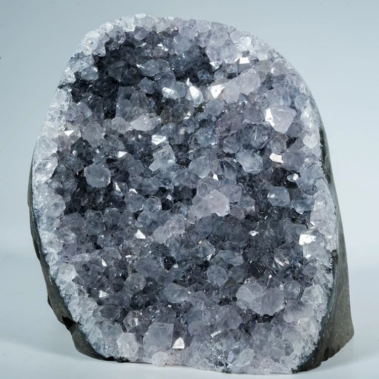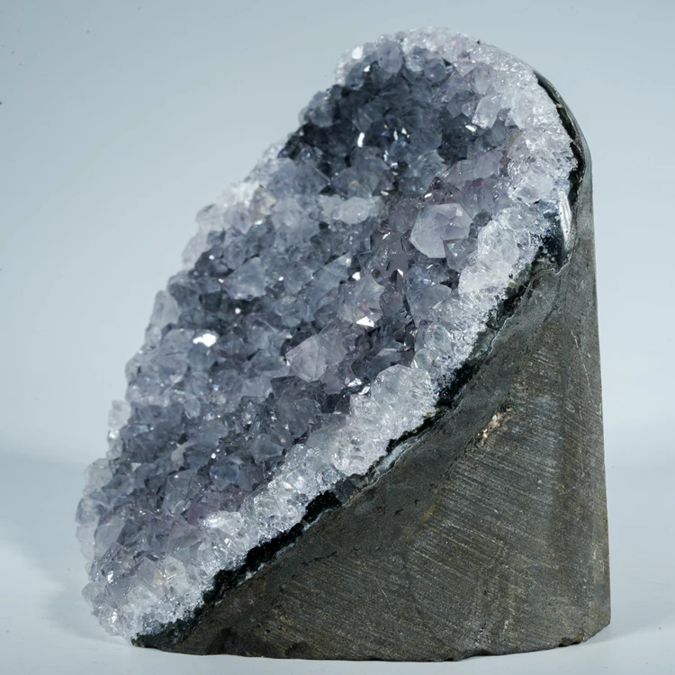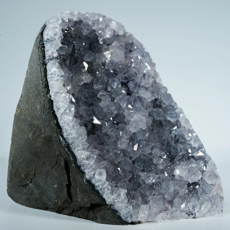 Oferujemy w pełni naturalny ametyst w formie krystalicznej geody, okaz stoi stabilnie bez potrzeby użycia dodatkowej podstawki, dzięki podciętej podstawie. Ten niezwykle efektowny minerał zachwyca intensywną, fioletową barwą i połyskiem ładnie wykształconych kryształów ametystu. Idealnie sprawdzi się jako naturalna dekoracja wnętrza, element kolekcji minerałów lub oryginalny prezent dla miłośników kamieni naturalnych.