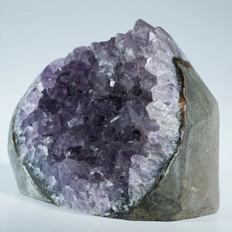 Oferujemy w pełni naturalny ametyst w formie krystalicznej geody, okaz stoi stabilnie bez potrzeby użycia dodatkowej podstawki, dzięki podciętej podstawie. Ten niezwykle efektowny minerał zachwyca intensywną, fioletową barwą i połyskiem ładnie wykształconych kryształów ametystu. Idealnie sprawdzi się jako naturalna dekoracja wnętrza, element kolekcji minerałów lub oryginalny prezent dla miłośników kamieni naturalnych.
