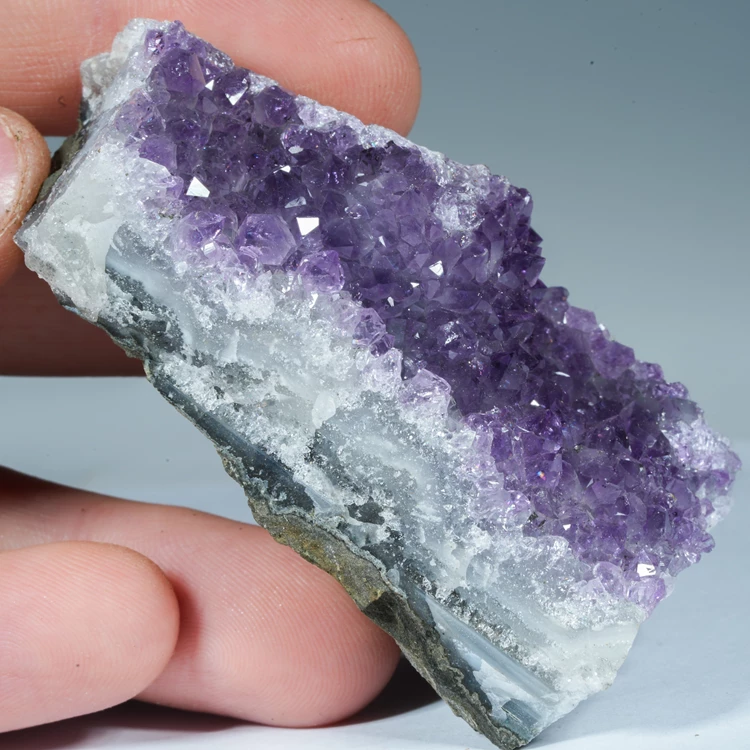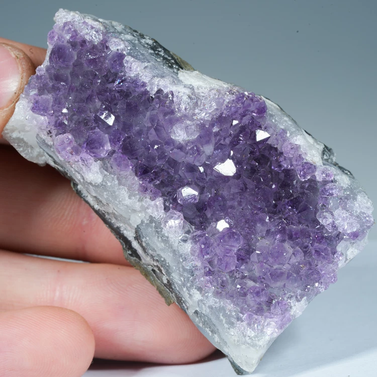 Oferujemy w pełni naturalny ametyst w formie szczotki krystalicznej, pochodzący z Brazylii. Ten niezwykle efektowny minerał zachwyca intensywną, fioletową barwą i połyskiem drobnych, świetnie wykształconych kryształów.