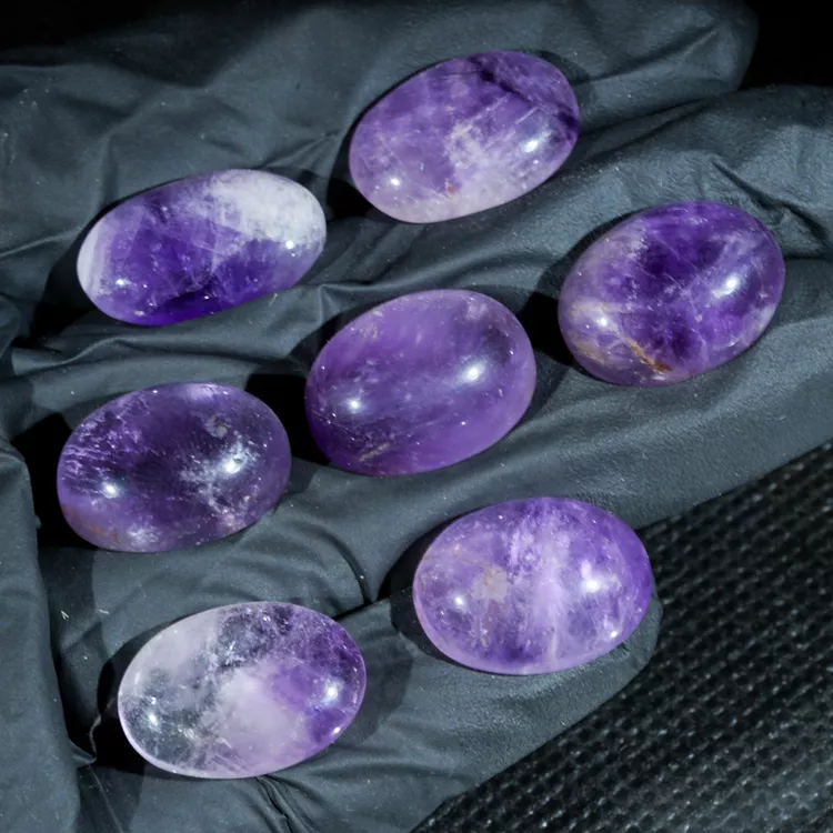 Oferowane kaboszony wykonane są z naturalnego ametystu wydobywanego w Brazylii. Kamienie te charakteryzują się półprzejrzystą strukturą, w której można dostrzec naturalne pasma, inkluzje oraz strefowanie barwy, co potwierdza ich autentyczne pochodzenie. Cała powierzchnia owalu została wypolerowana na wysoki połysk, co nadaje minerałowi szlachetnego blasku. Dzięki gładkiej obróbce, ametyst prezentuje się bardzo naturalnie, stanowiąc idealne uzupełnienie każdej domowej kolekcji minerałów.