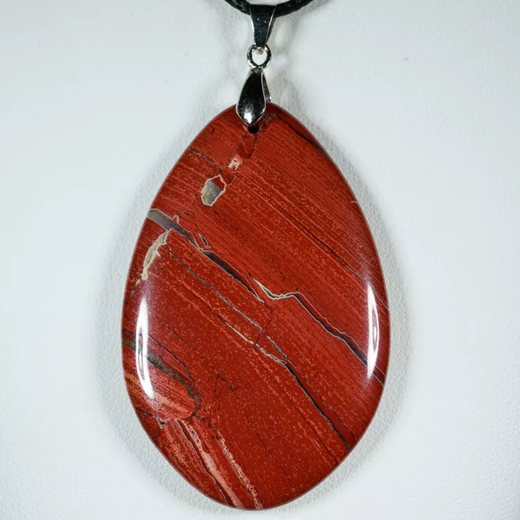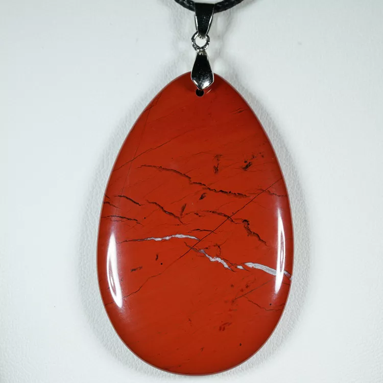 Duży Wisiorek - Czerwony Jaspis Naturalny – Szlifowana Gruszka, Pełny Poler