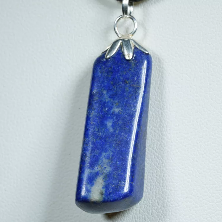 Naturalny lapis lazuli z Afganistanu, wypolerowany na całej powierzchni w formie gładkiego otoczaka. Kamień wyróżnia się intensywnym, naturalnym, niedobarwianym odcieniem niebieskiego. Zaczepka jest metalowa i posrebrzana, dzięki czemu wisiorek jest gotowy do zawieszenia na łańcuszek lub rzemień.