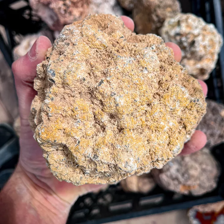 Przedmiotem oferty jest 1 kilogram surowych, rzadko spotykanych agatów z Argentyny. To surowiec wyjątkowy pod względem geologicznym, występujący w formie całych, sferycznych buł (Thundereggs). Agaty z Patagonii charakteryzują się niezwykle bogatą paletą barw oraz znikomą ilością spękań, co czyni je niezwykle wydajnym i wdzięcznym materiałem do cięcia oraz dalszej obróbki.